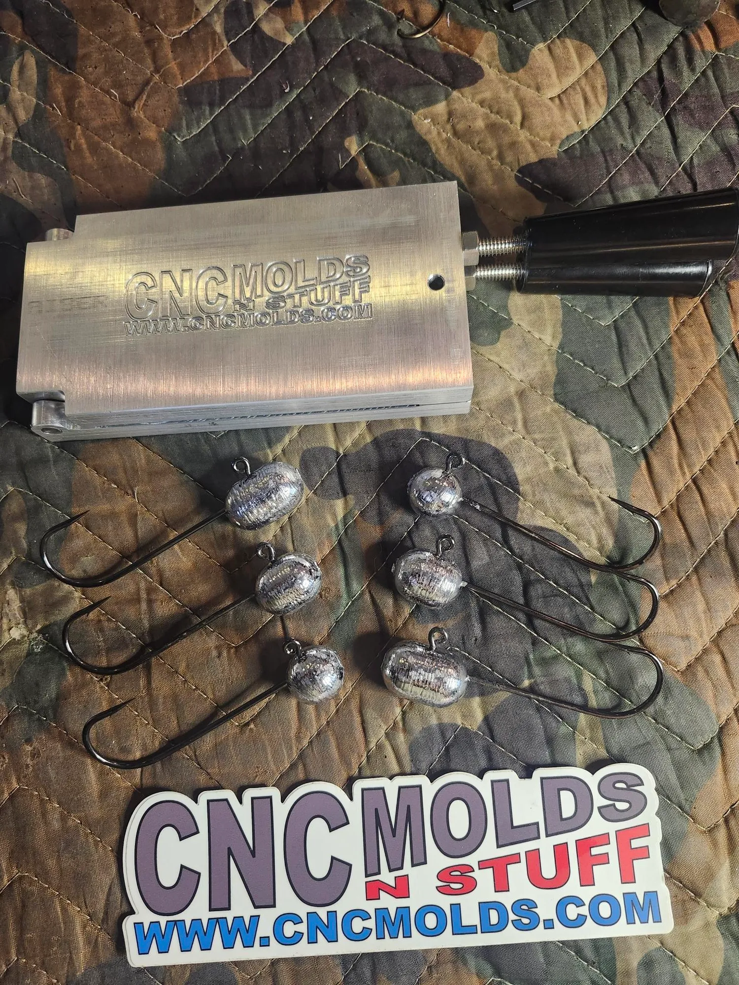 This jig was designed to for a popular 6 inch long by 1 inch wide tube bait, and is a good match for the baits produced from our own 6x1 or 7x1 Shoot N Slice Tube mold.